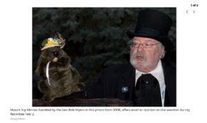 It’s been a more than decade since Mount Joy discovered its own Groundhog Day prognosticator: Mount Joy Minnie, who always wears a jaunty spring bonnet.